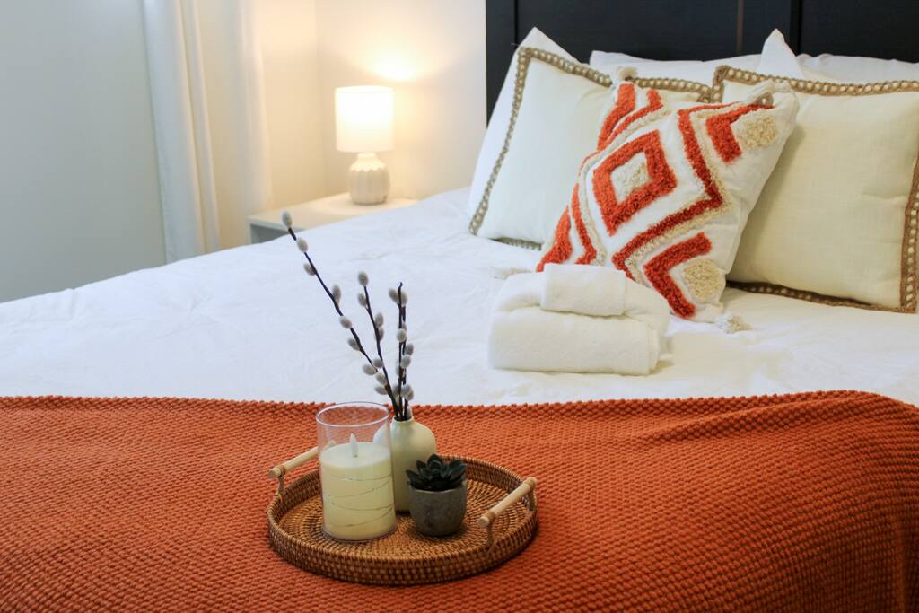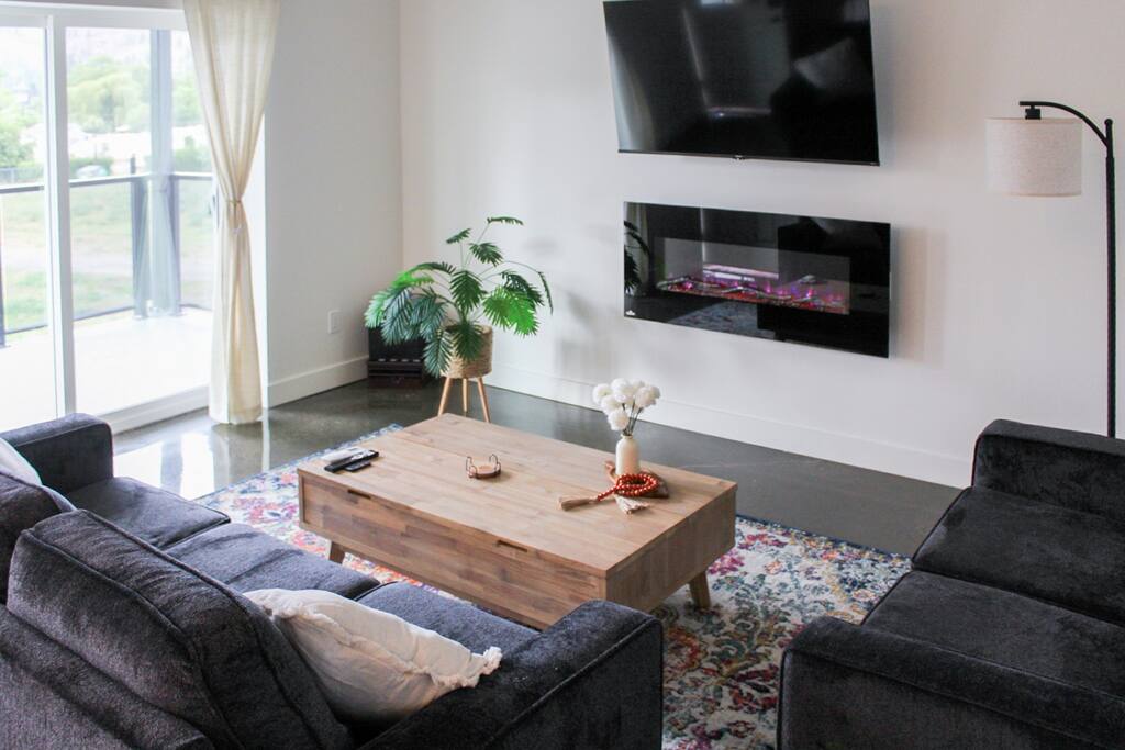 Escape to The Ultimate Okanagan Retreat, where modern comfort meets wine-country charm. This spacious 2-bedroom, 1-bath suite features an open-concept living area with comfortable seating, a smart TV, and a double sofa bed, perfect for relaxing after a day exploring nearby Skaha Lake, award-winning wineries, or scenic hiking trails. The bedrooms are bright and airy, with a queen bed in one and a single-over-double bunk in the other, each with quality linens and private Juliette balconies overlooking the town. Heated floors, A/C in the living room, and thoughtful touches like board games, and abundant natural light create a welcoming, year-round retreat. For ultimate relaxation, head to the shared rooftop oasis with a hot tub, sauna, cold plunge, BBQ, and sweeping lake & mountain views - the perfect blend of comfort and wine-country adventure.