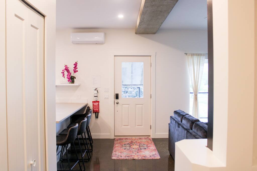 Guests enjoy seamless self check-in via smart keypad - your unique code will be sent just before arrival. The front door and shared spaces are monitored by a Ring camera for added security. Each unit includes two private parking spots directly out front (tandem style). You'll also have your own porch with a seating area facing the lake - ideal for morning coffee or golden hour wine. Shared amenities include a rooftop patio (open 24/7 for stargazing or sunset vibes) + hot tub, sauna, and cold plunges available daily until 11 PM.