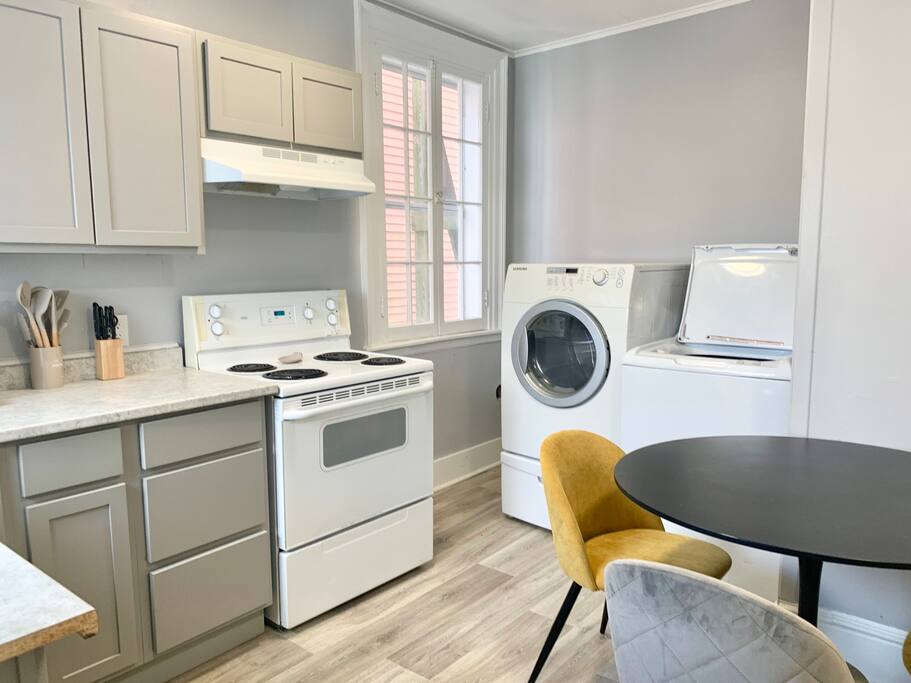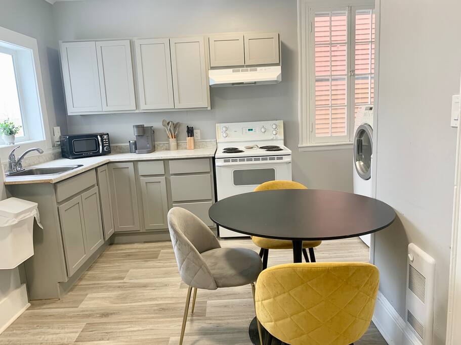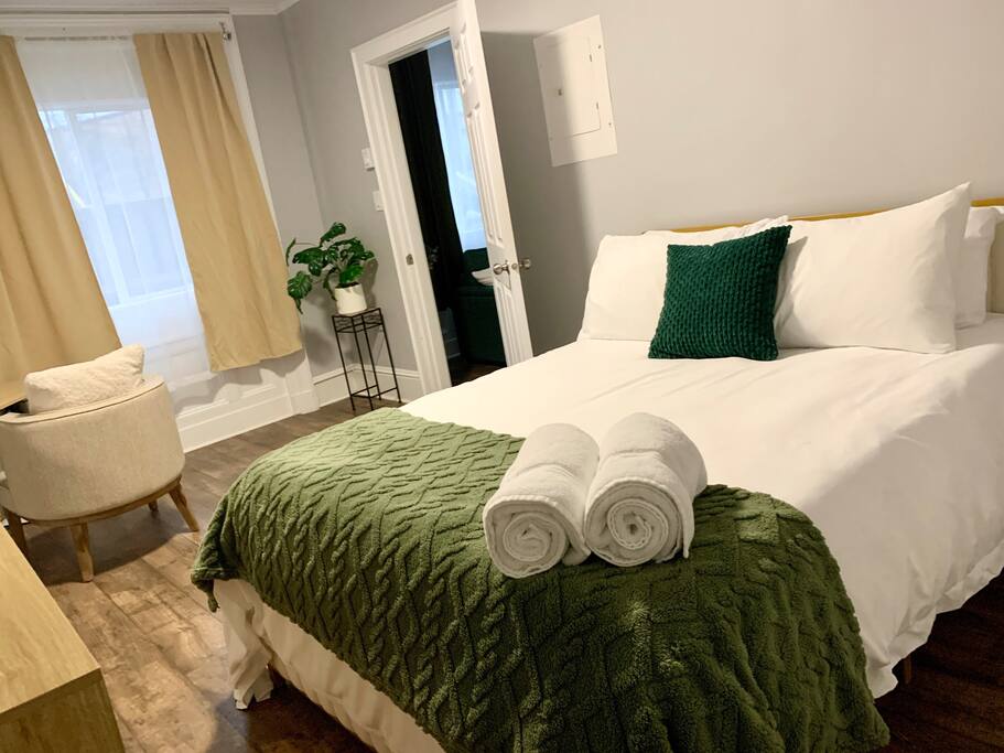 Welcome to Comfort & Convenience at 103 Hazen St. Nestled directly across from St. Joseph's Hospital and just a 10-minute walk from Uptown Saint John, our cozy and practical 1-bedroom suite is perfect for healthcare professionals, travel nurses, and visitors looking to explore the city. *About the Space* Step into a welcoming retreat designed with both comfort and functionality in mind: - A Restful Bedroom: Enjoy peaceful nights in the queen-sized bed with luxurious linens and plush pillows. Fresh towels and bedding are always provided. - A Versatile Living Room: Relax on the cozy couch, which easily transforms into a sofa bed for one, accommodating an extra guest with ease. - A Fully Equipped Kitchen: Prepare meals in the kitchen, outfitted with essential appliances, utensils, and cookware. - Dedicated Workspace: Need to stay productive? We’ve included a quiet desk setup perfect for professional tasks. - Washer and Dryer: A washer and dryer are conveniently located in the suite to handle your laundry needs during your stay. - Entertainment: Unwind with our selection of board games, perfect for cozy nights in. **Renovation Updates** The building’s exterior is currently undergoing renovations, and while the outside may not look its best yet, we assure you that it’s all part of a bigger plan to enhance the property. Don’t let the current appearance deter you—inside, you’ll find a warm, welcoming, and thoughtfully prepared space. *Location Highlights* Our location provides unparalleled convenience: - A 10-minute walk to Uptown Saint John’s City Market, King’s Square, art galleries, and local restaurants. - Directly across from St. Joseph's Hospital, making it ideal for travel nurses or family members visiting loved ones. Why Choose Us? Whether you’re here for work or leisure, this suite offers a blend of affordable comfort, practicality, and prime location. With thoughtful touches, ongoing improvements, and exclusive perks for our returning guests, we’re committed to making your stay exceptional.